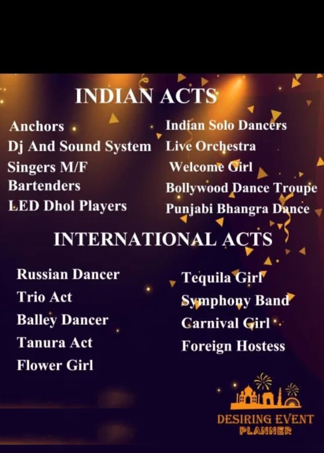We specialize in creating unforgettable event experiences with our wide range of services. From stunning decorations that set the perfect ambiance to seamless celebrity management, we ensure every aspect of your event is handled with precision. Our expertise extends to bands and artist management, bringing incredible talent to elevate your celebration.